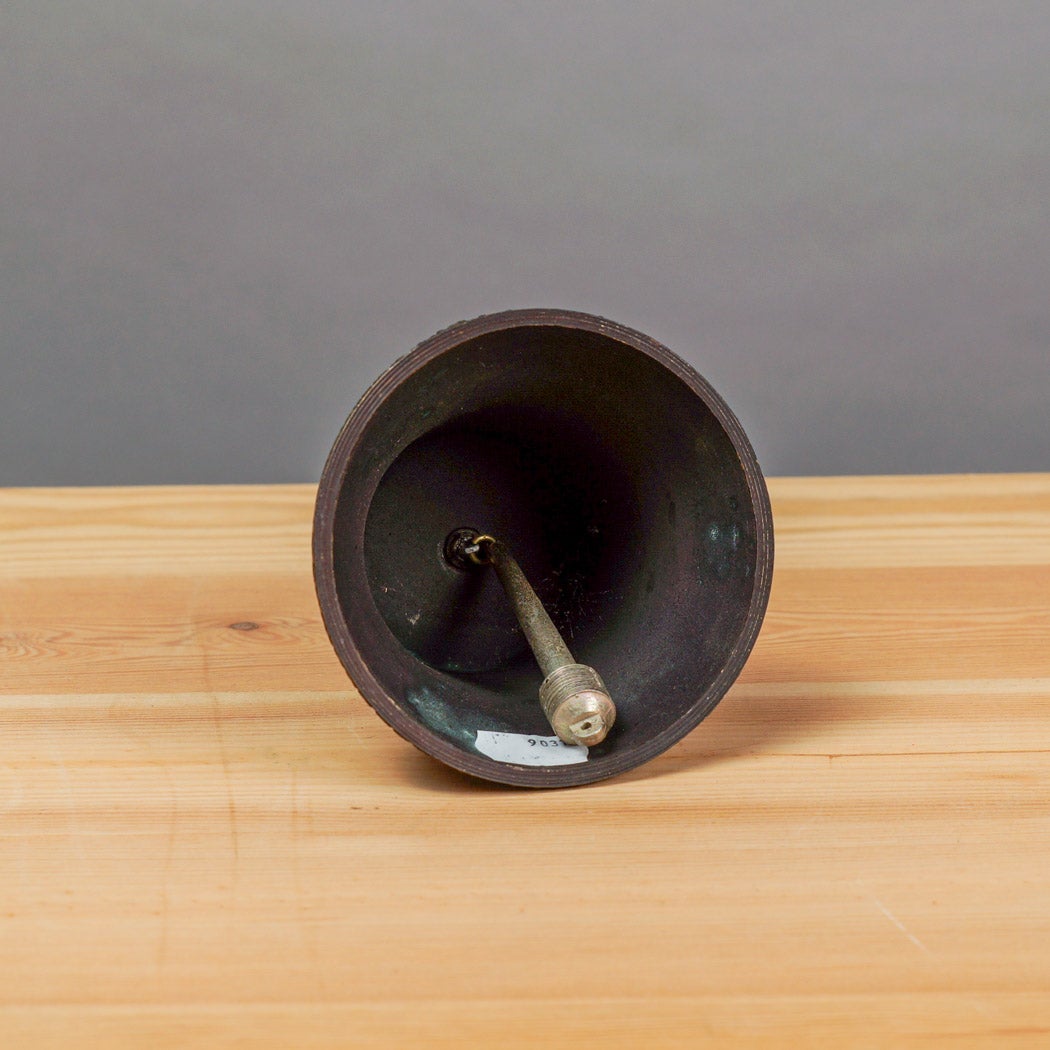 Syvä, tummasävyinen pintapatina korostaa kellon yksityiskohtia ja antaa sille autenttisen antiikkihenkisen ulkonäön. Tukevasti muotoiltu ripustuslenkki viimeistelee esineen kokonaisuuden.