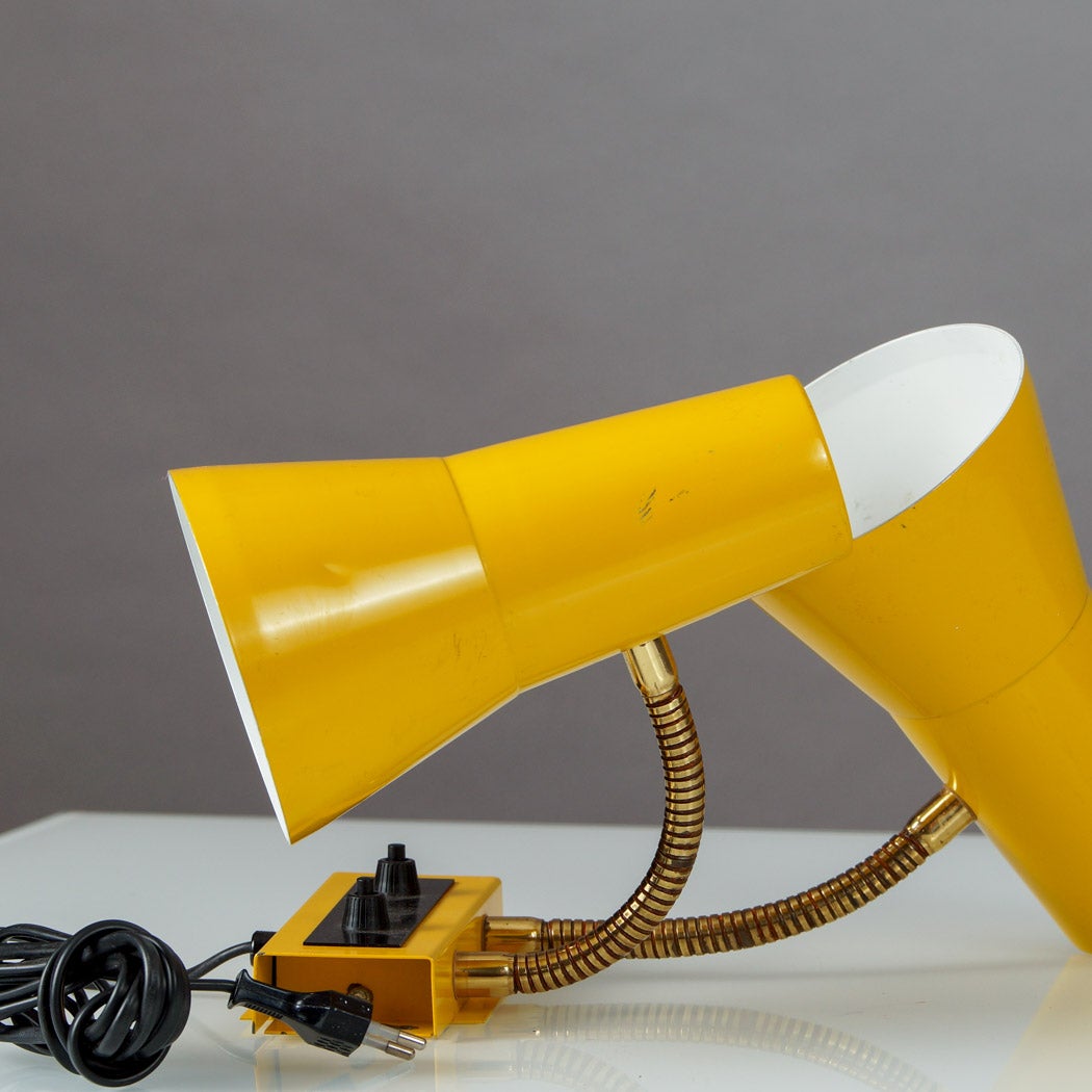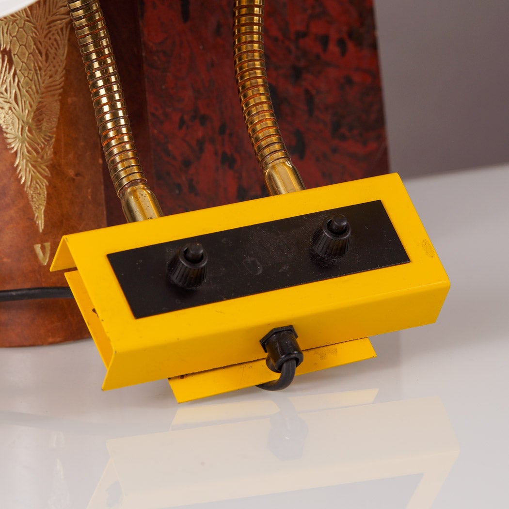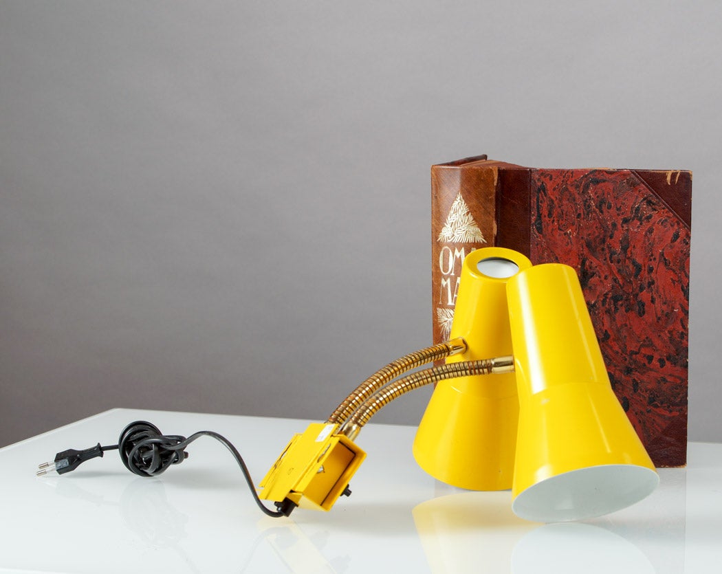 Piristävä ja persoonallinen vintage-seinävalaisin valmistajalta Aris. Kirkkaan keltainen väri, maalattu metallirunko ja messinkiset yksityiskohdat henkivät vahvaa ajalleen tyypillistä muotoilua ja tekevät valaisimesta todellisen katseenvangitsijan. Kaksi säädettävää valonlähdettä tarjoavat käytännöllisyyttä esimerkiksi lukuvaloksi, työtilaan tai tehostevalaisimeksi.