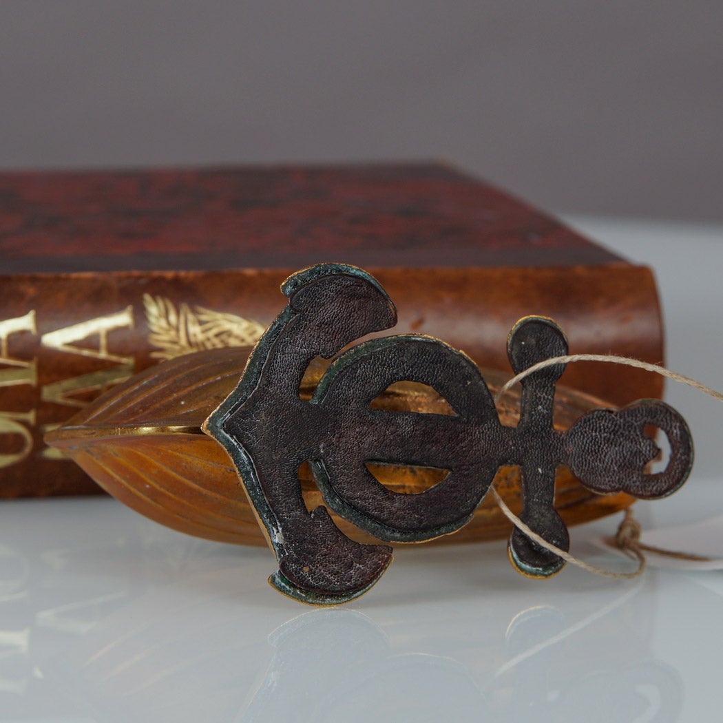Koristeellinen, veneen muotoinen vintage-esine, jossa jalustana toimii näyttävä ankkuriaihe. Valmistettu valetusta messingistä, ja pinnassa on kaunista ajan patinaa sekä käytön jälkiä, jotka tuovat esiin esineen iän ja autenttisen luonteen.
