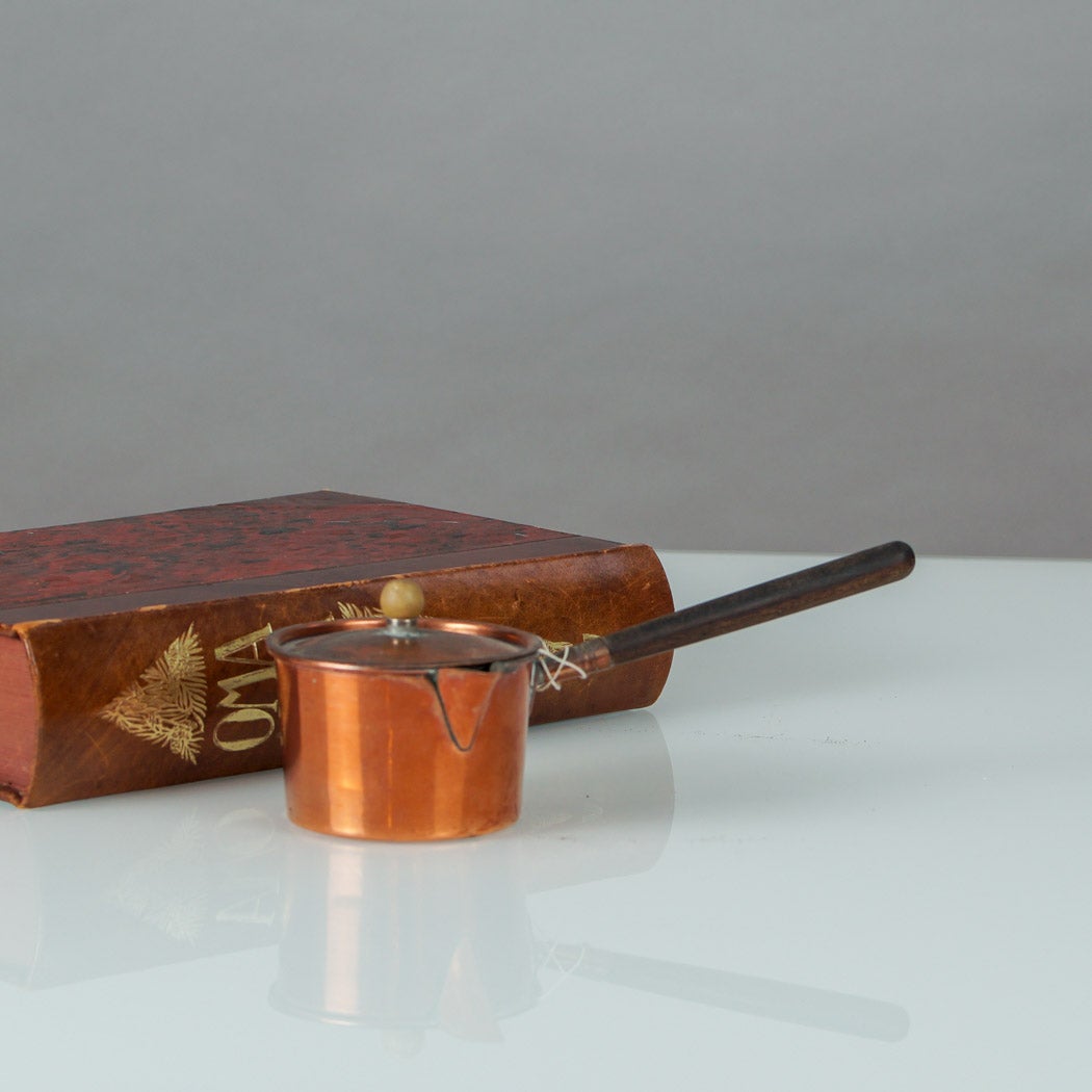 Kaunis ja käytännöllinen kuparinen voisulakattila, joka edustaa perinteistä keittiöesineistöä. Kattila on varustettu pitkällä puukahvalla ja kaatonokalla, mikä tekee voin tai muun rasvan sulattamisesta hallittua ja siistiä. Lämmin kuparipinta ja ajalle tyypillinen muotoilu tekevät tästä myös viehättävän sisustuselementin.