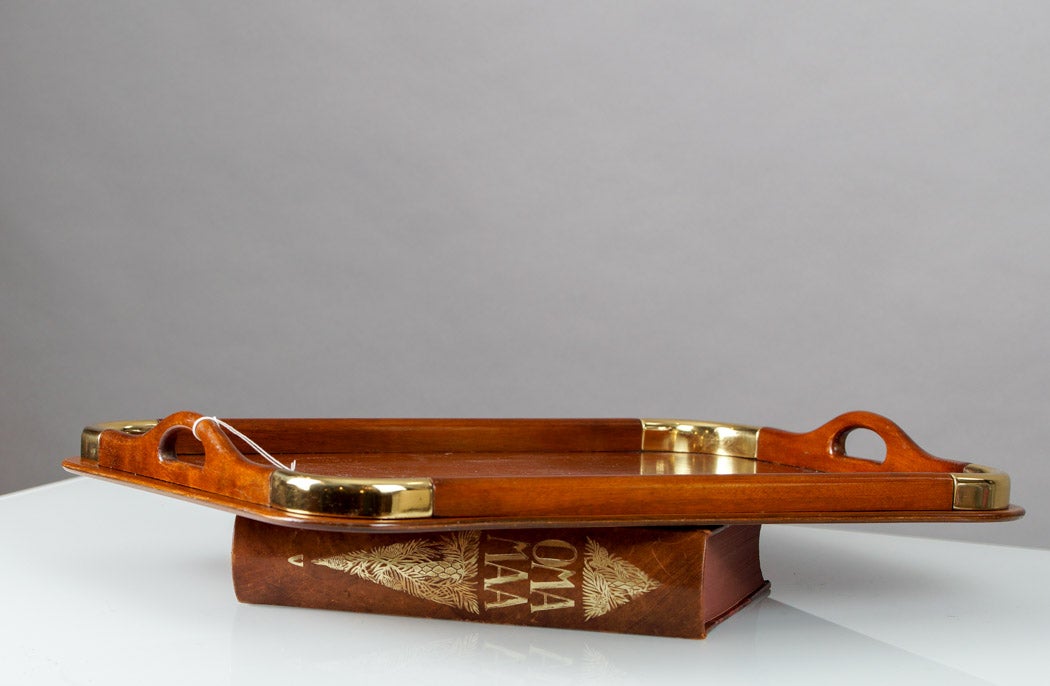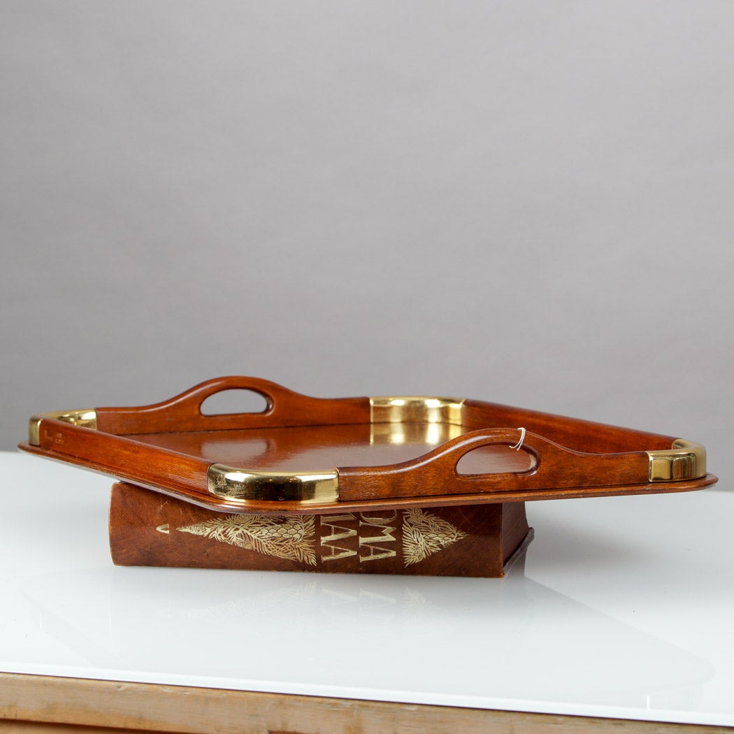 Tyylikäs ja ajattoman kaunis vintage-tarjotin espanjalaiselta Valenti-valmistajalta 1970-luvulta. Lämminsävyinen puupinta ja metalliset yksityiskohdat tuovat tarjottimeen klassista eleganssia ja autenttista retrohenkeä. Sopii erinomaisesti tarjoiluun, sisustuselementiksi tai osaksi vintage-kokoelmaa.